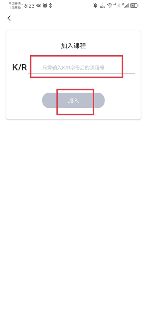 2、输入K/R字母后的课程号后即可加入