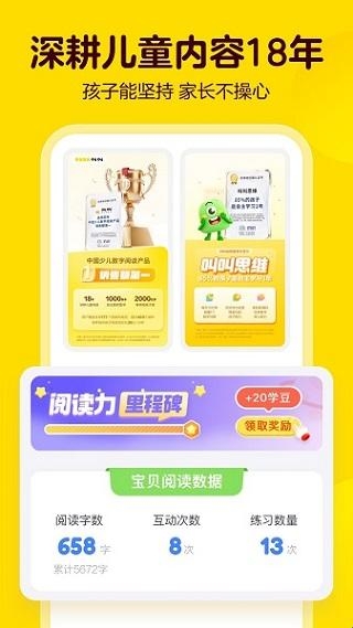 6.练习评估:叫叫阅读app官方提供一些练习题目,如阅读理解、词语配对等,帮助孩子巩固所学知识,并对学习效果进行评估。