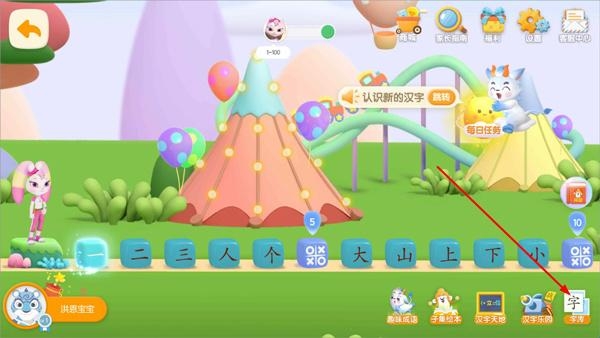 1、洪恩识字最大的特点就是可以帮助孩子学习汉字了,用户在进行登录后,只需点击切换学习栏目类型即可开始学习