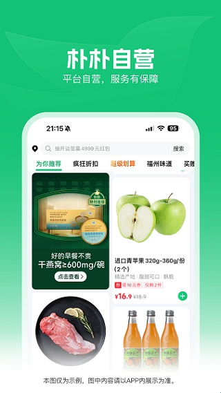 朴朴超市app是一款高效的主打超市购物的移动互联网购物平台。用户只需通过手机在线下单选购,即可享受30分钟极速送货上门的贴心服务,非常方便!软件的品类包含:水果蔬菜、肉禽蛋奶、粮油调味、酒水饮料、休闲食品、个人护理、化妆品、清洁用品、日用百货等,日常生活所需品类一应俱全,一站式购齐,用户足不出户,手机上随时随地搞定日常生活所需。天天有特惠,日日能抢鲜,软件始终以“安全、优质、方便、快捷”为理念,以“诚信”作为公司和每位员工的行为准则,以“超越客户期望”为目标,致力于为用户提供丰富的商品选择、便捷的购物方式和完善的售后服务,打造更好的E时代购物体验,带来真正优质的生鲜美食,朴朴一下,新鲜就到。朴朴超市以更高效快捷的仓储配送模式、更高标准的食品安全管控体系,为购物者带来更优秀的消费体验。同时让用户轻松享受线上购物模式带来的便捷、舒适与高效,体验全新的生活乐趣!