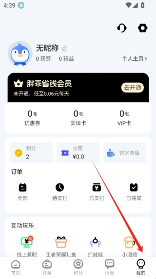 4、在“我的”栏目中,则可以看到你的全部订单支付记录,还有各类优惠券的情况。
