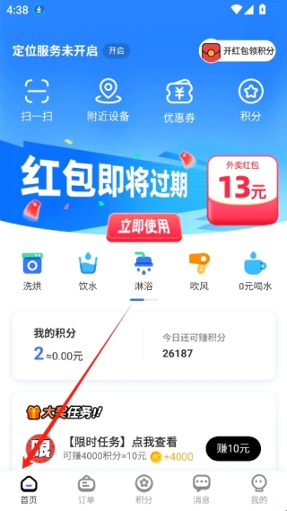 1、进入APP后,在首页就能看到根据你的定位可以使用的生活服务,要先打开定位系统哦。