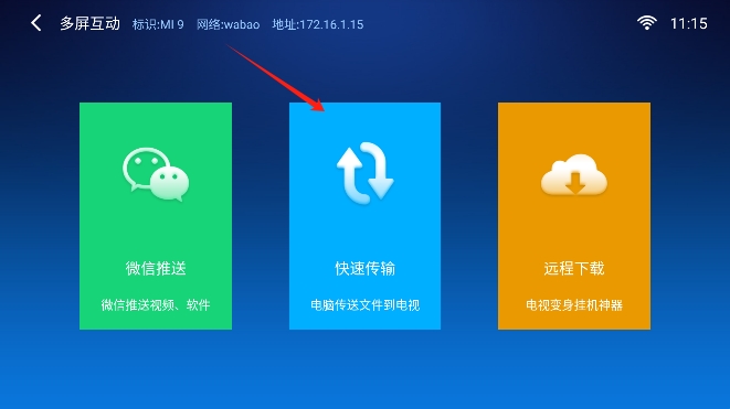 2、然后点击快速传输。