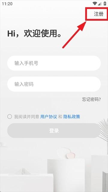 1、下载安装并打开太智能APP,进入登录界面后点击右上角注册