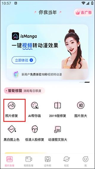 你我当年ai照片修复是一款功能全面的照片修复软件,你也有那些破旧模糊的老照片吗,那就来你我当年吧,该软件搭载了强大的智能修复模式,让你所有照片焕然一新,同时还能让你的自拍照片变清晰哦,快来一起下载吧!