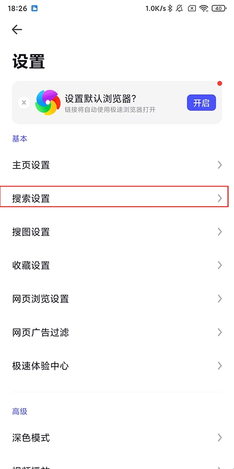 3、点击【搜索设置】;