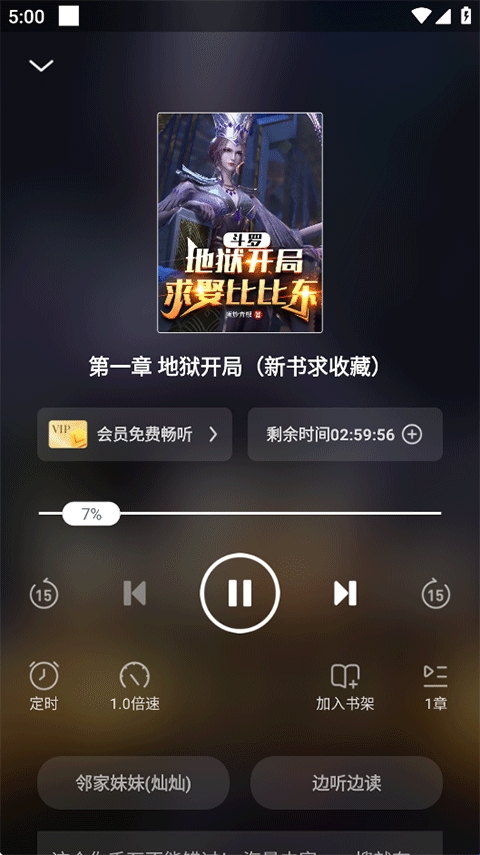4、在听书播放页还可以进行定时、倍速、边听边读等设置。