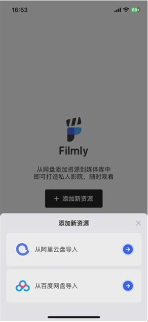 1、打开App后,点击【添加新资源】开始导入操作。