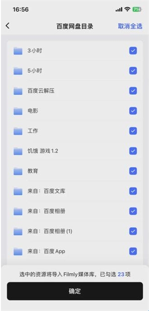 4、确认导入后,资源将逐步同步至App中,具体完成时间根据网盘文件的数量和大小而定。