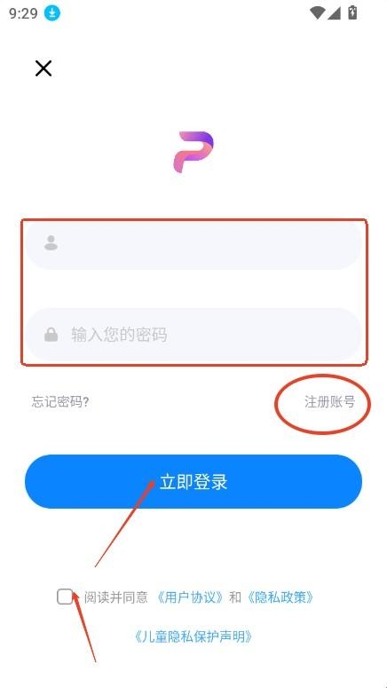 2、进入登录界面,输入账号密码,点击登录,或者直接点击下方注册