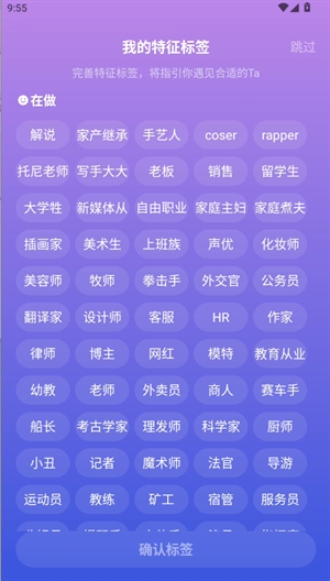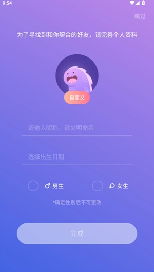 4、成功登录后,用户需要先进行个人信息完善,包括性别、生日等等,方便后续为大家匹配更加适配的朋友。
