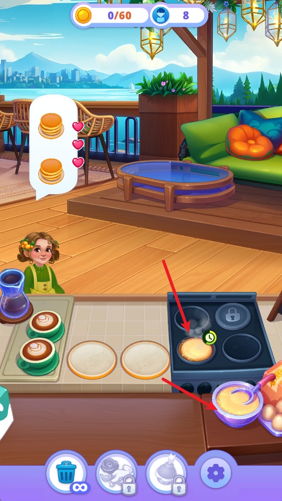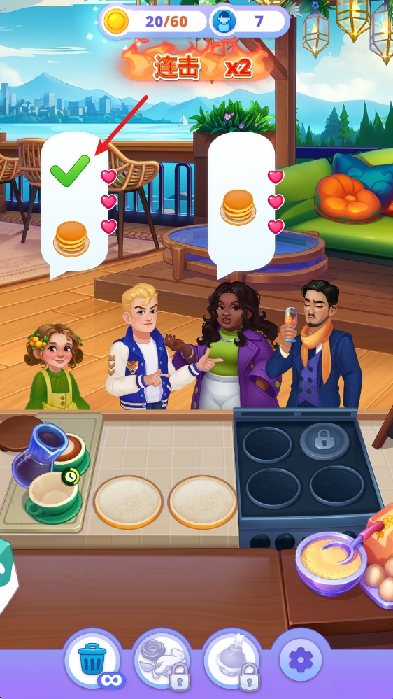 2、进入关卡后,根据客人要求开始制作美食,点击面糊进行制作。