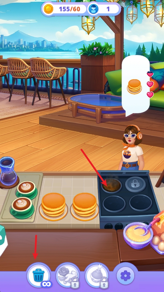 6、在制作过程中,如果不小心将派烤糊了,点击下方的垃圾桶按钮即可清除。