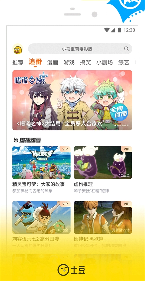 一款超级好用的手机追剧追番神器——土豆网app,软件拥有海量的正版视频资源,各种电影、电视剧、动漫、综艺、娱乐、旅游、体育、教育等热门视频一网打尽,还有更多好玩好看有意思的视频,想看什么点击搜索就能直接播放,满足你的所有需求!