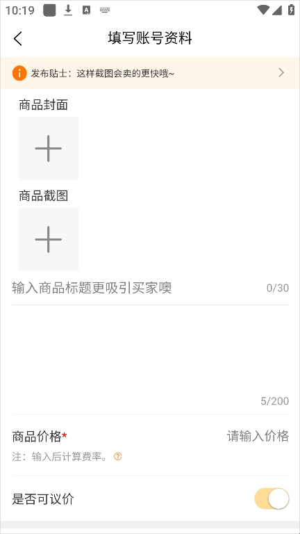 3、【卖号】:选择交易属性、填信息、发照片、最快20分钟极速变现。