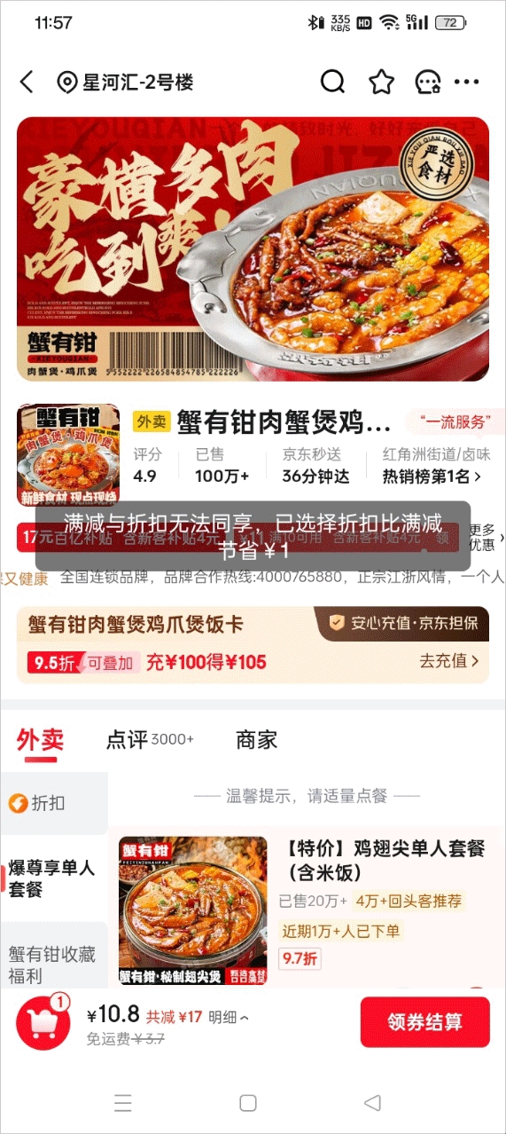 1、全新的优惠活动,京东外卖在上线初期提供了大量的优惠卷,用户可以在下单时领取并使用。