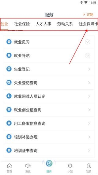 3、滑动分类,选择【社会保障卡】功能板块。
