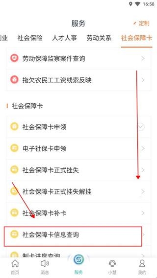 4、向下滑动,选择【社会保障卡信息查询】即可。