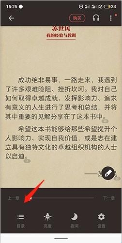 2、点击屏幕,弹出设置选项,点击底端的“目录”选项。