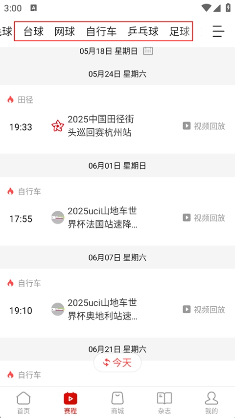 4、在赛程页中展示了有关于台球、网球、自行车、乒乓球以及足球等众多体育赛事,让你一次看个爽;