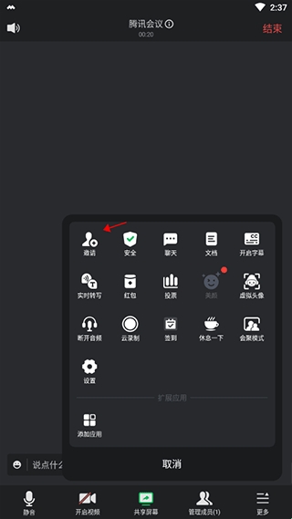 5、在展开的上拉菜单中,找到“邀请”选项,点击它展开邀请界面。
