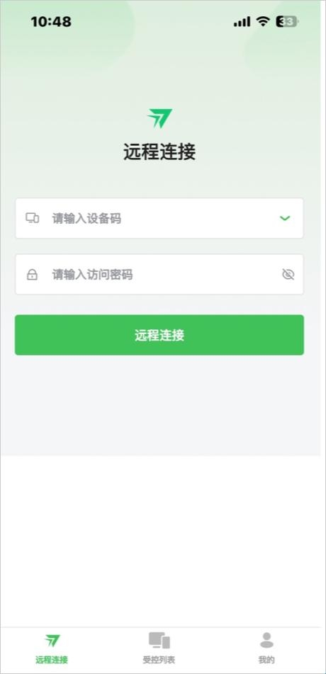 3、打开手机,输入电脑端的设备码以及访问密码,点击远程连接,连接成功后你就可以在手机上看到你的电脑桌面。