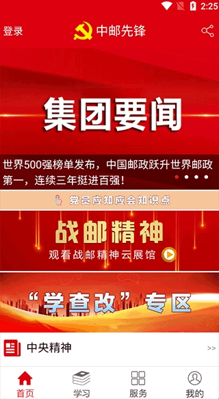 中邮先锋app是中国邮政发布的软件,用户可以通过软件进行了解党的最新动态。软件提高党的丰富的学习资料,还可以通过平台参加各种党建活动。党员可以通过平台反馈的民生问题及时处理,增加工作的效率。软件还会及时推送每日新闻,用户可以在平台上互动交流。
