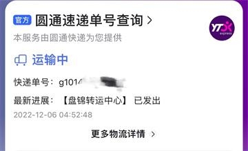 第三种,查不到任何国际物流,到国内盘锦了才有物流。