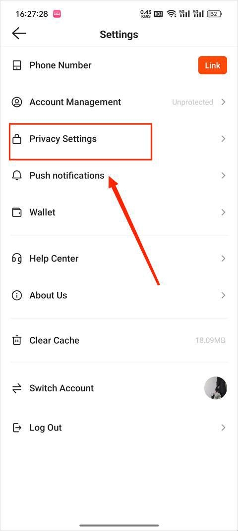 3、进入设置界面后,点击【Privacy Settings】隐私设置;