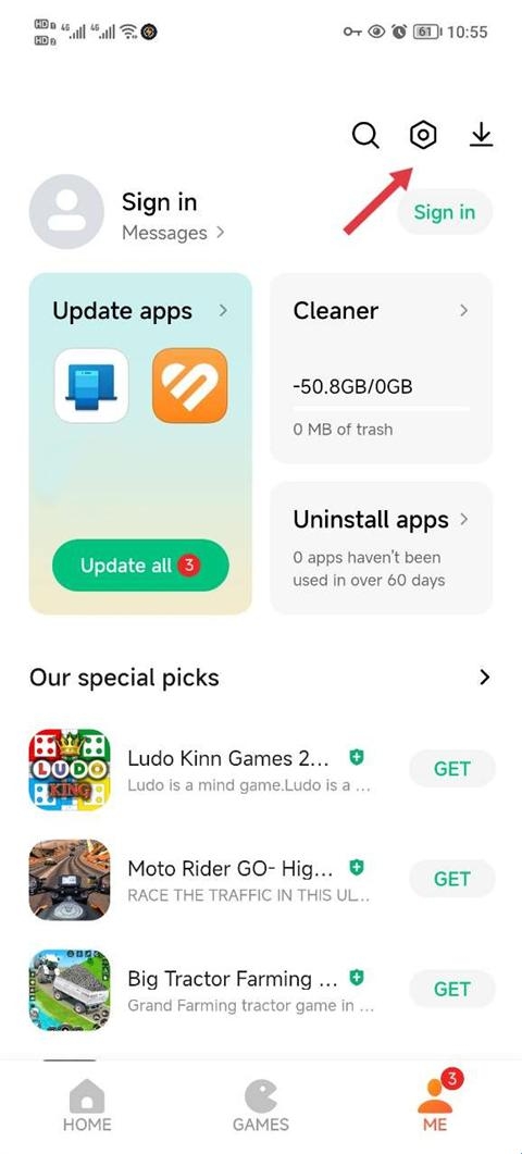 2、向您展示如何访问下载次数最多的应用程序和游戏的排名。