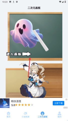 1、在软件首页底部,点击【二次元画板】进入对应功能界面。